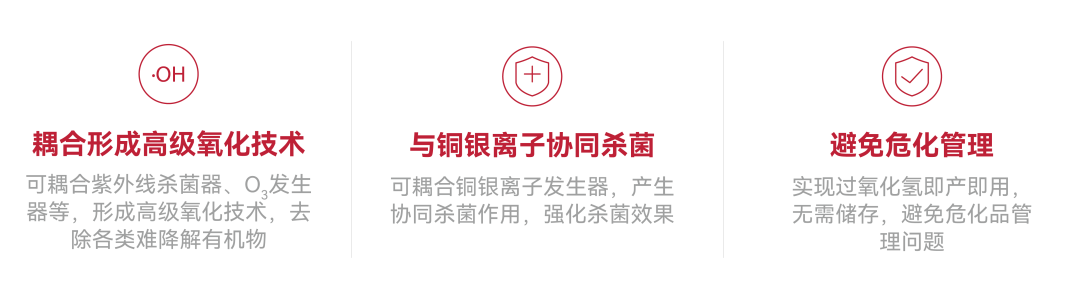 奕湃科技已构建起工业碱性过氧化氢合成(漂白专用)、工业中性过氧化氢合成(氧化专用)、商用中性过氧化氢合成(杀菌专用)、民用过氧化氢合成(家电专用)四大技术体系,可满足从工业化应用到商用/民用的差异化需求。